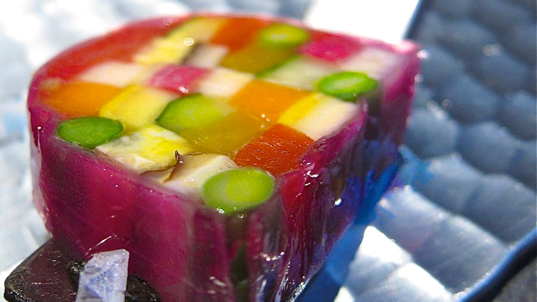 Takazawáéknál mindenbe tesznek egy kis cifrát, így a hagyományos francia konyhát idéző ratatouille is már-már művészi tálalásban érkezik az asztalra: az ételbe kerülő paradicsom, paprika, shiitake gomba, spárga és répa külön-külön készül el, mindegyik zöldséget a neki legjobban megfelelő módon készítik, majd szép színes mozaikká rendezve kerül a vendégek tányérjára. Az ízélményt hihetetlenül finomra őrölt só teszi tökéletessé.