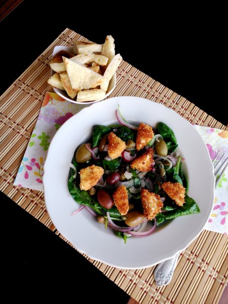 Szóval minden hétre meg volt adva a téma, ami szerint fel kellett tölteni a recepteket, általában valamelyik nemzet konyhája. Volt egy görög hét is, erre találtam ki ezt a salátát.