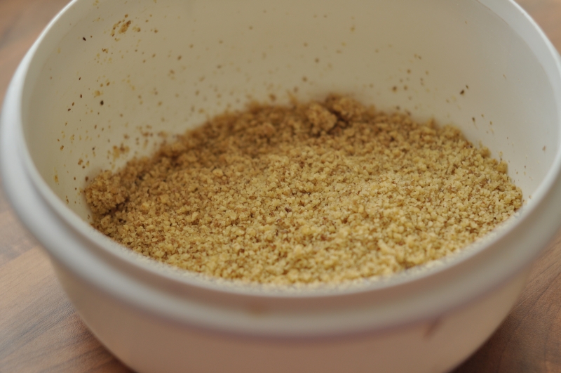 Közben elkészítjük a tölteléket. A darált diót összekeverjük a cukorral, a vaníliás cukorral és a citromok reszelt héjával.