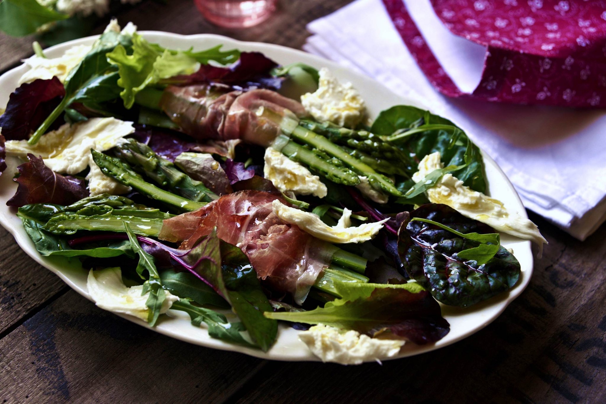 Tavaszi saláta sonkával, spárgával és mozzarellával