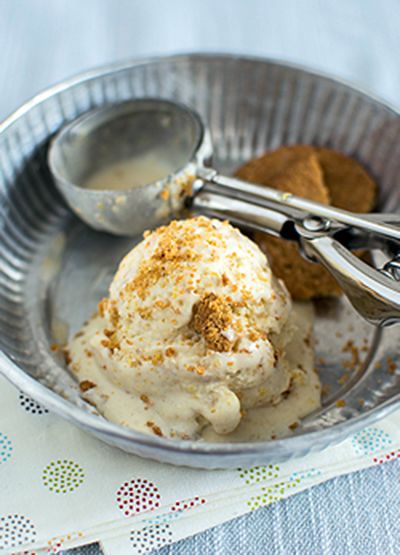 A kekszeket durvára törjük, félretesszük. A tejet és a 3 dl tejszínt felforraljuk, a tojássárgáját fehéredésig keverjük a cukorral, majd nagyon lassan hozzákeverjük a meleg tejet, tejszínt. Az egészet visszaöntjük a lábosba, hozzákeverjük a vaníliakivonatot/a kikapart magokat, majd lassú tűzön folyamatosan kevergetve sűrű krémet főzünk belőle. Akkor jó, ha a fakanalat bevonja. Szoba-hőmérsékletűre hűtjük. A 2 dl hideg tejszínből robotgéppel közepesen kemény habot verünk. A túrót szitán áttörjük, belereszeljük a citrom héját, elkeverjük a citromlével, lazán összeforgatjuk a tejszínhabbal. A túrós masszát elkeverjük a vaníliás krémmel és az összetört keksszel. Az egészet hűtőszekrényben lehűtjük, majd fagylaltgépben krémesre fagyasztjuk. Fogyasztásig mélyhűtőben tároljuk. Gép nélkül is elkészíthető: a kész masszát egy lapos edénybe töltjük, majd félóránként néhányszor botmixerrel átkeverjük, hogy megfelelő állagú legyen.