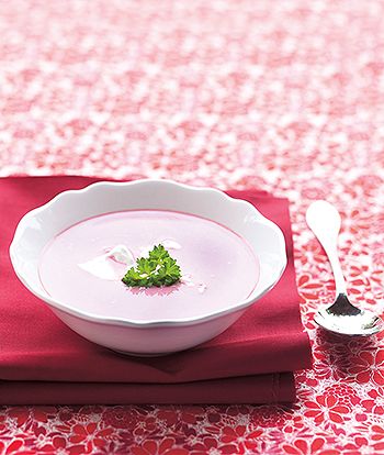 A hámozott céklát vágjuk egészen apró kockákra, dinszteljük 5-10 percet az olívaolajon, majd öntsük fel 1 liter vízzel, adjuk hozzá a római köményt. Lefedve főzzük puhára a céklát. Mikor megfőtt, turmixoljuk le a levest, sózzuk, borsozzuk, keverjük el benne a tejszínt, majd tányéronként teáskanálnyi tejföllel tálaljuk.