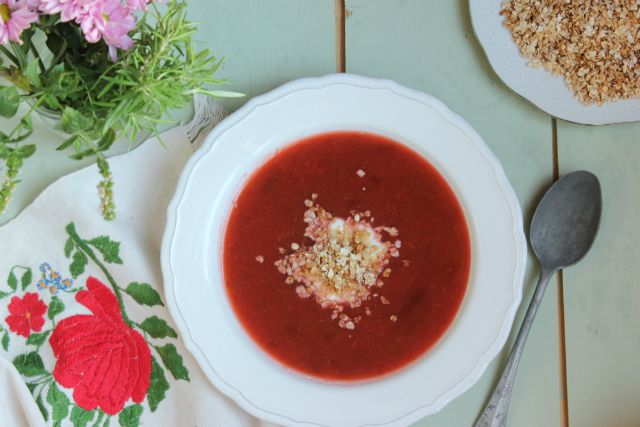 Hűlni hagyjuk. Tálaláskor a levesre kanalazunk egy evőkanál joghurtot, és megszórjuk a pirított, karamelizált zabpehellyel.