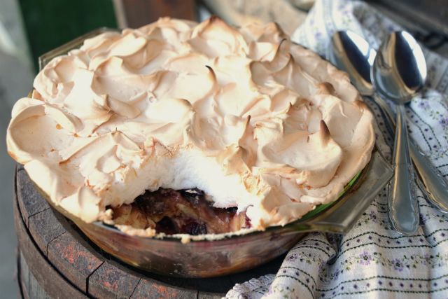 A fehérjéből habot verünk, amikor már keményedik, kanalanként hozzáadjuk a cukrot, és legalább 1 percig verjük utána, hogy szinte vágható, kemény masszát kapjunk. Ezt kanállal vagy habzsákkal a körtés rész tetejére tesszük, és 170 fokos sütőben grillfokozaton vagy légkeveréssel éppen csak addig sütjük, míg a tetejének lesz egy kis színe.