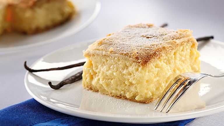 A mirelit vajastésztát szobahőmérsékleten kiolvasztjuk, majd lisztezett deszkán 2 darab 1 mm vékony lapot nyújtunk belőle, kissé nagyobbat annál a formánál, amelybe később a krémest töltjük, mert a vajas tészta összeugrik sütés közben.