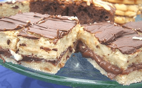 Ha kihűltek a lapok, az egyiket egy magas falú tepsi vagy más szögletes forma aljára rakjuk, a másikat pedig egy fűrészfogú késsel 4×4 cm-es négyzetekre vágjuk, ezek lesznek majd a tetején.