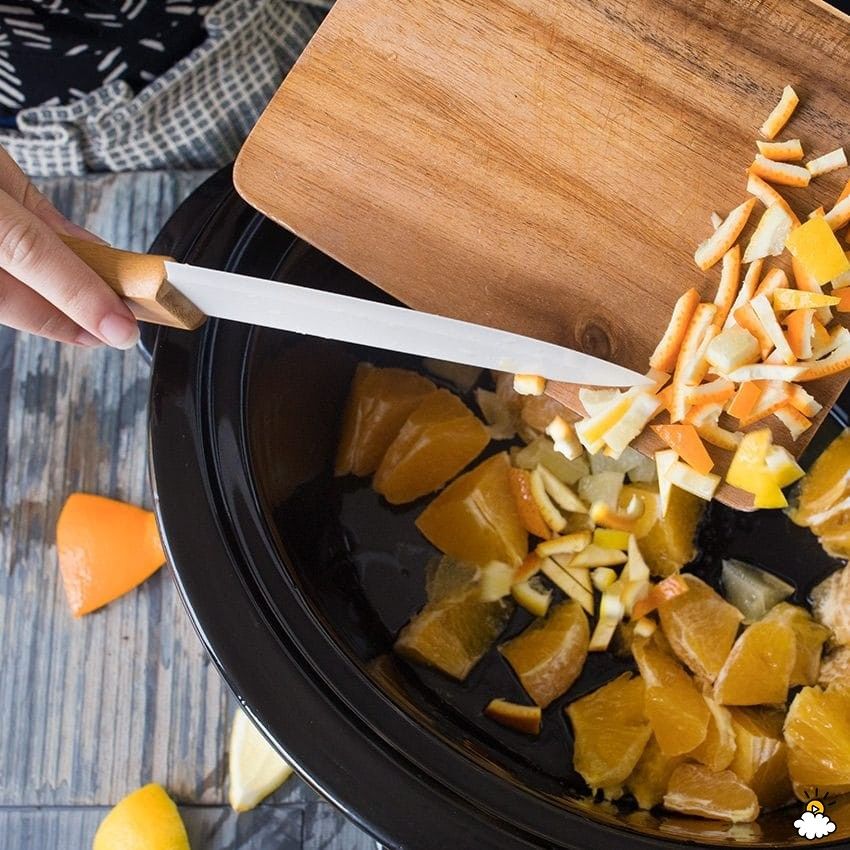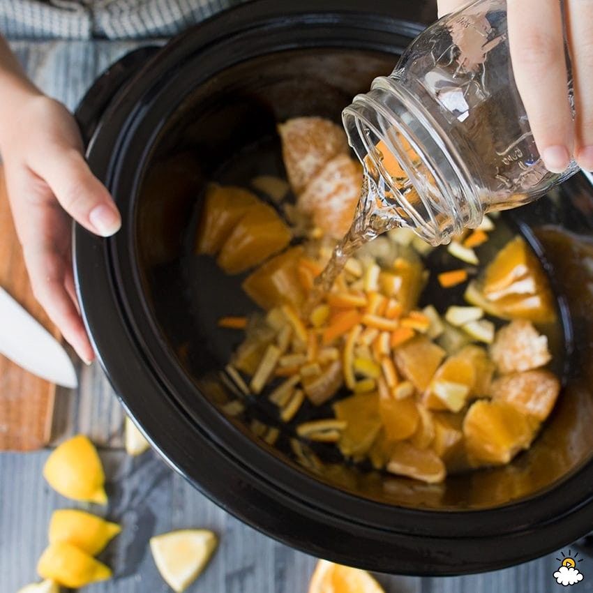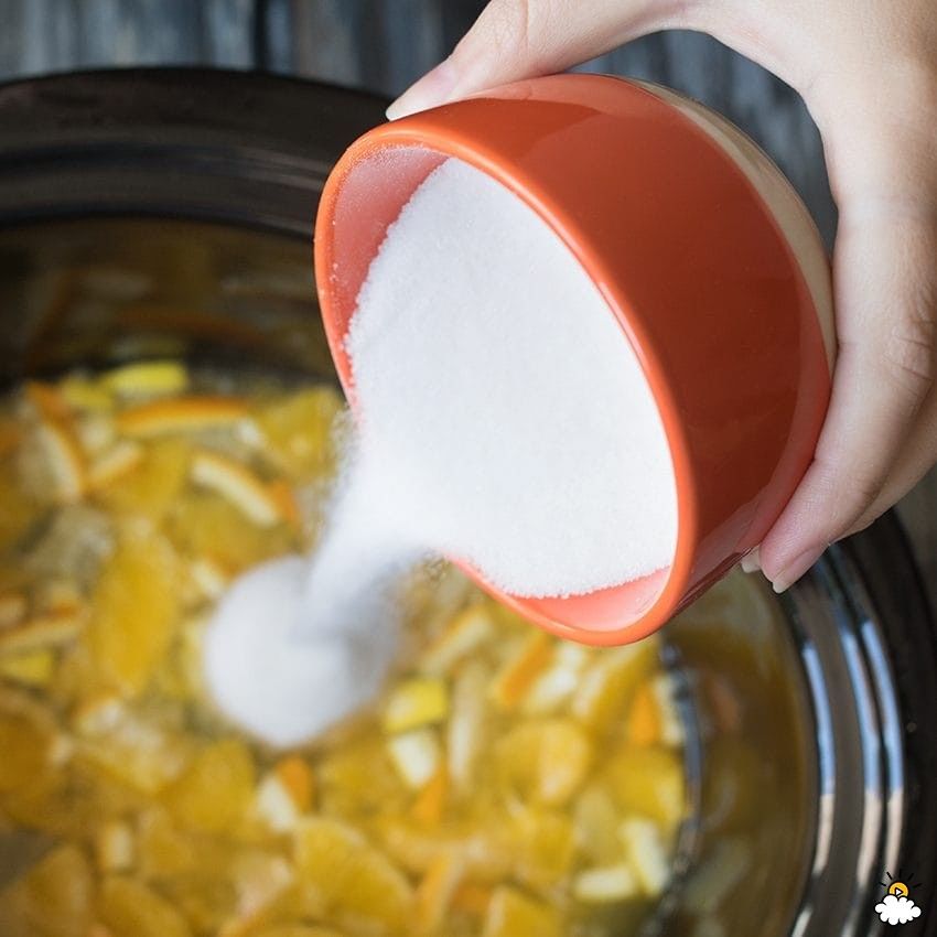Tegyél bele mindent az elektromos főzőedénybe és keverd össze a narancs-és citromhéjak, ügyelve arra, hogy egyenletesen szétoszlasd őket.