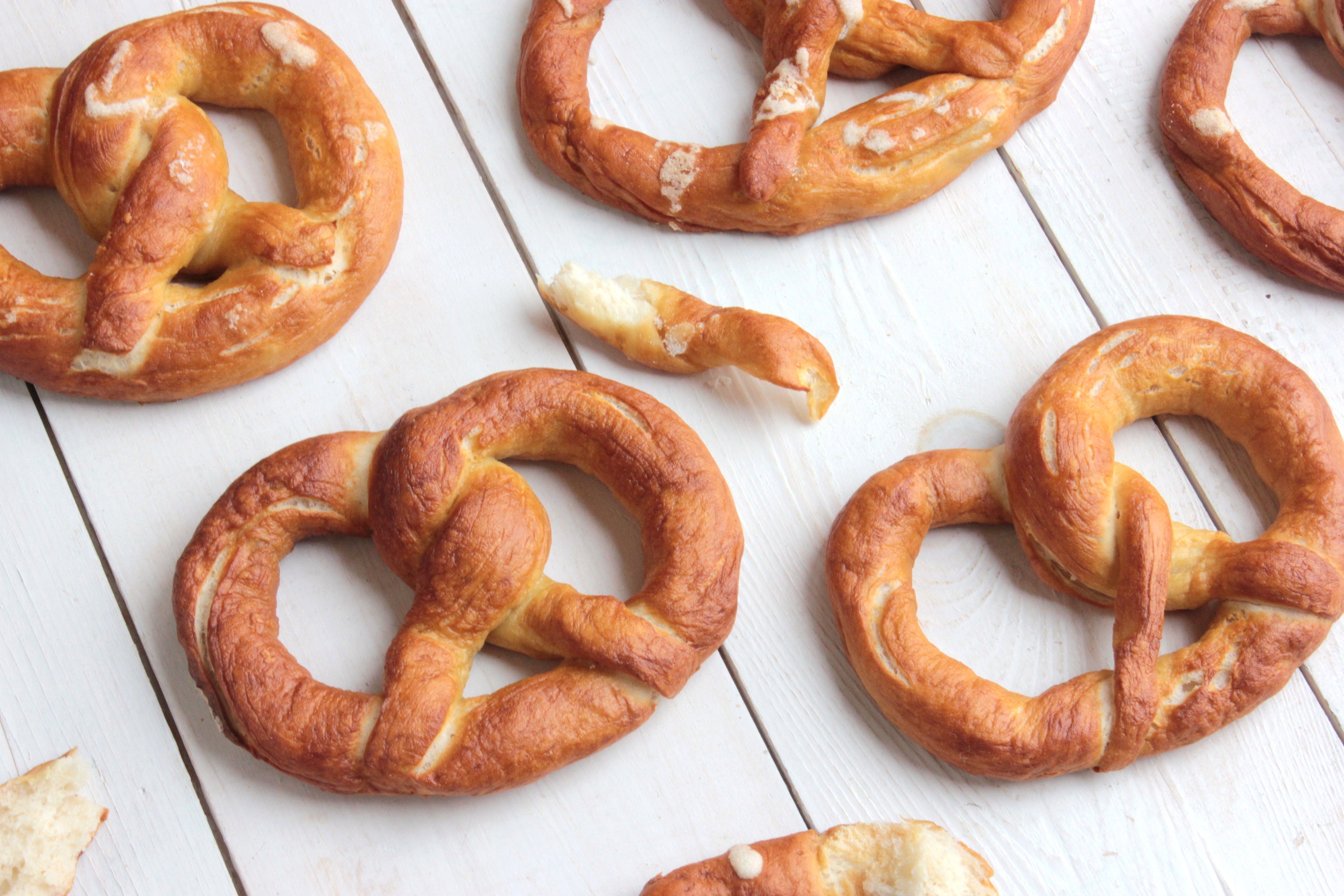 Egy nagy lábasban felforraljuk a vizet, majd hozzáadjuk a szódabikarbónát. A lángot takarékra vesszük, és a perecek mindkét oldalát 30-30 másodpercig főzzük. Sütőpapírral bélelt tepsire helyezzük a kifőzött pereceket, megszórjuk mindegyiket durva szemű tengeri sóval. Az előmelegített sütőben 15-20 perc alatt aranybarnára sütjük.
