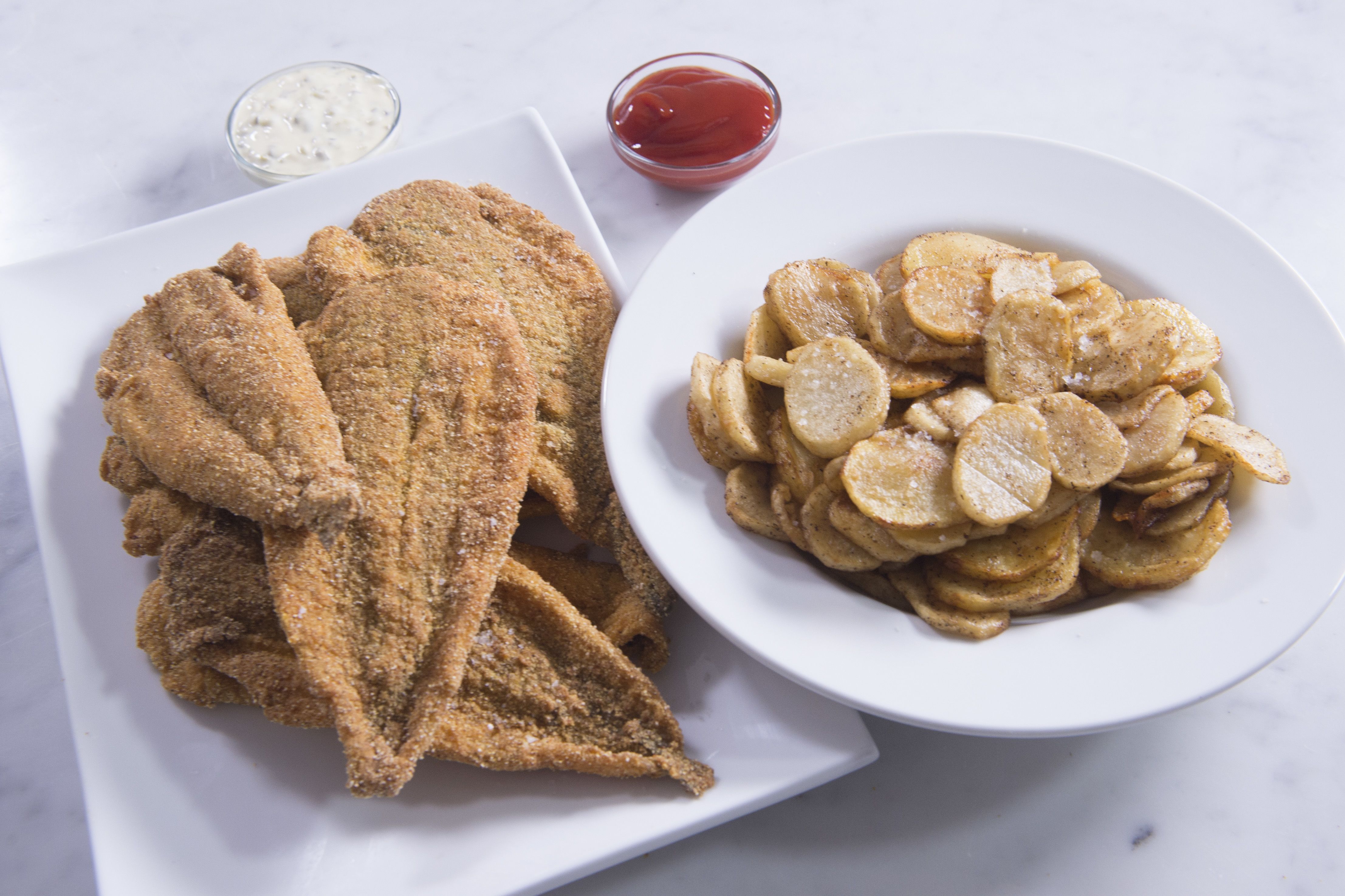 A „fish and chips”-et a tartár öntettel együtt, mártogatásra készen szolgáljuk fel.