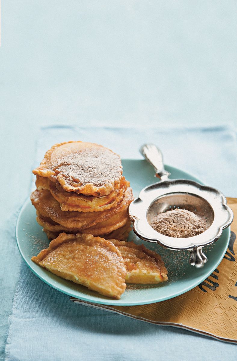 A narancsokat mossuk meg, szeleteljük fel vékonyan. A tojásokat válasszuk ketté. A sárgáját keverjük el a borral, a liszttel és a porcukorral. A fehérjét verjük fel kemény habnak, keverjük a boros krémhez. Forrósítsunk fel olajat egy serpenyőben. Sütés előtt mártsuk be a boros tésztába a narancskarikákat, forró olajban süssük őket aranybarnára. Melegen, fahéjas porcukorral megszórva tálaljuk.