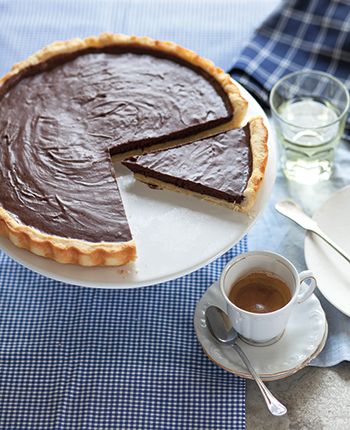 A tésztához a lisztet keverjük el a porcukorral, csipet sóval. Adjuk hozzá a felkockázott vajat, majd morzsoljuk el vele, adjuk hozzá a tojást, gyúrjuk össze a tésztát. Ha szükséges, adjunk hozzá 1-2 evőkanál hideg vizet, hogy összeálljon. Formázzunk gömböt belőle, csomagoljuk folpackba, tegyük minimum 30 percre a hűtőbe. Melegítsük elő a sütőt 200 °C-ra, a tésztát nyújtsuk ki enyhén lisztezett felületen 4-5 mm vékonyra, helyezzük piteformába. A tészta alját villával szurkáljuk meg, helyezzünk rá sütőpapírt, szórjunk bele nehezéknek száraz babot vagy lencsét, és süssük 15 perc alatt készre a pitelapot (a nehezék miatt nem púposodik fel a tészta, azt sütés után dobjuk ki). A csokoládét alacsony hőfokon olvasszuk meg a vajjal együtt, keverjük hozzá a mogyorókrémet, ha kihűlt a keverék, adjuk hozzá a kemény habnak felvert tejszínt is. Oszlassuk szét a krémet a teljesen kihűlt pitetésztában, és szilárdulásig tegyük a hűtőbe.