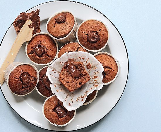 Melegítsük elő a sütőt 180 °C-ra. Keverjünk össze minden száraz hozzávalót. Verjük fel a tojásokat a tejszínnel, majd keverjük bele az olvasztott vajat. A csokoládét olvasszuk fel gőz fölött 1 evőkanál tejjel. Az olvasztott csokoládét és a NUTELLA®-krémet adjuk a tojásos-tejszínes-vajas keverékhez. Alaposan dolgozzuk össze, majd keverjük hozzá a száraz hozzávalókat. A keverékkel töltsük háromnegyedig a muffinformákat vagy papírkapszlikat. A tetejére szórjunk csokoládécseppeket. Süssük körülbelül 20 percig.
