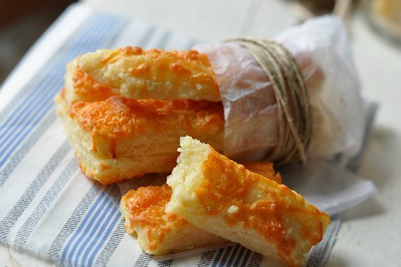 Pont letelik a 10 perc, vehetjük is elő a hűtőből a tésztát. Lisztezett deszkán kb. 1 cm vastagságúra nyújtjuk, lekenjük a tojással és megszórjuk a sajttal, majd kb. 1-1,5 cm széles és 8-10 cm hosszú csíkokra vágjuk.
