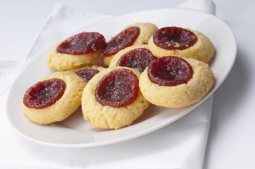 A tésztából 2-3 centi átmérőjű gombócokat formázunk, majd a sütőpapírral kibélelt tepsibe tesszük őket. A tetejüket kicsit benyomjuk, hogy egy mélyedés keletkezzen a süteményeken. 5 percig 180-200 fokos sütőben sütjük, ezután rákanalazunk egy kevés lekvárt, lehetőleg ne darabosat, és mehet vissza a sütőbe újabb 5 percre. Dobozba téve 2-3 hétig is simán eláll.
