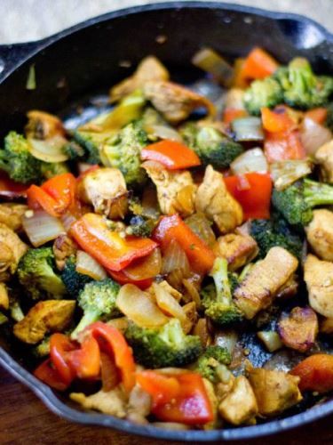 Amikor a hús és a zöldségek is szépen megpirultak, adj hozzá még egy-két kanálnyi olívaolajat, ízlés szerint sózd, borsozd, fűszerezd. Forrón tálald. Önmagában is nagyon finom, vagy kínálhatsz hozzá barna rizst.