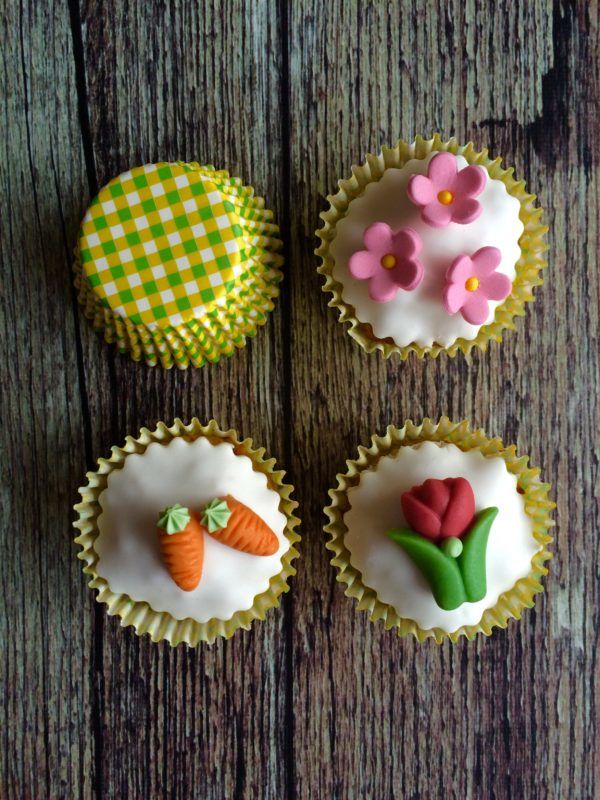 Ha húsvét, akkor nyuszi, akkor tavasz, akkor répa és virágok, így adta magát, hogy répatortás muffin készüljön marcipános virágdíszítéssel.