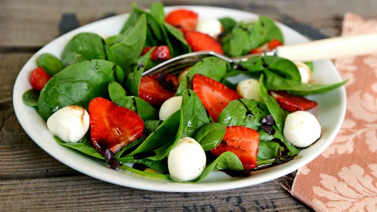 Mozzarellás-epres spenótsaláta (Fotó: NLCafé)