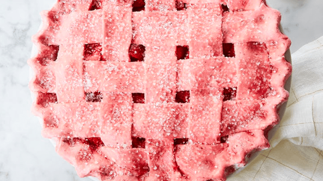 Íme, egy epres pite, melynek a tésztája is csodás rózsaszínben pompázik, hála magának az epernek.