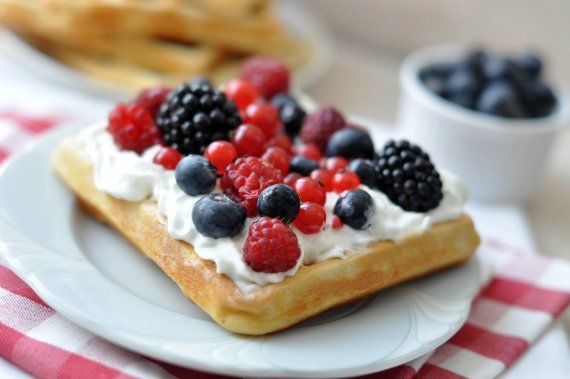 A tojásokat kikeverjük a cukrokkal, majd hozzáadjuk az olvasztott vajat, a tejet és a reszelt citromhéjat, és összekeverjük. Hozzáadjuk a lisztet és a sütőport, és csomómentesre keverjük. Gofrisütőben kisütjük. Friss tejszínhabbal és gyümölcsökkel megpakolva tálaljuk.