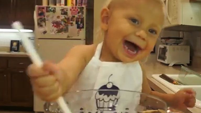 A totyogó cukrász a bájos felkonf után folyamatosan elmondja a hozzávalókat (azaz udvariasan kéri az anyukáját, hol a lisztet, hol a vajat, hol pedig a vaníliaaromát öntse bele a keverőtálba ), majd még arra is ügyel, hogy a vad kevergetések közben a nézőket is szórakoztassa egy-egy „hellózással”. Ugyan előfordulnak benne kisebb bakik (például lenyalja a keverőkanalat, összelisztezi a száját, anyukájára bízza a tojásfeltörést, vagy éppen rázúdít két egész doboz dekorcukorkát a kész piskótára), de első gasztrovideónak tökéletesen megállja a helyét!