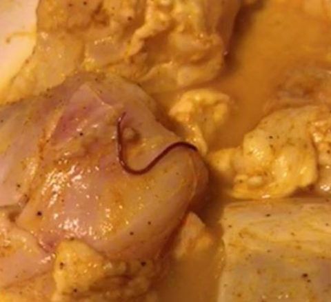 Ördöghalat vásárolt az angliai Doncaster egyik Tescójában a 32 éves Louis Ysser, ám amikor nekiállt curryt készíteni, azonnal elment az étvágya: a bepácolt haldarabokból élő, vörös színű, körülbelül 4 centi hosszú férgek bújtak elő. A pórul járt vásárló videóra vette a gusztustalan látványt.