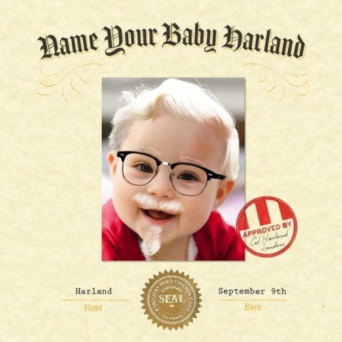 11 ezer dollárt, vagyis átszámítva mintegy 3 millió forintot ajánlott fel a KFC azoknak a szülőknek, akik alapítójuk, Harland Sanders után Harlandnek nevezik el idén szeptember 9-én születendő gyermeküket, és ezt elsőként jelzik a cégnek. A pénzt nem költhetik el akármire, azzal a gyerek majdani felsőoktatási tanulmányainak költségeihez járulnak hozzá.