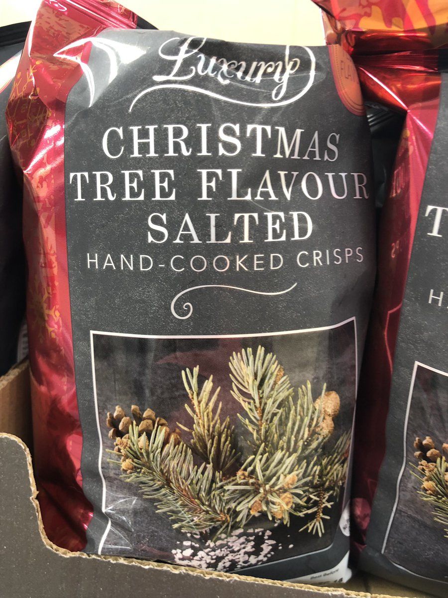 A karácsonyi ízt a fenyőolaj hivatott biztosítani, legalábbis ez a chips egyetlen olyan összetevője, amely nem mindennaposnak nevezhető.