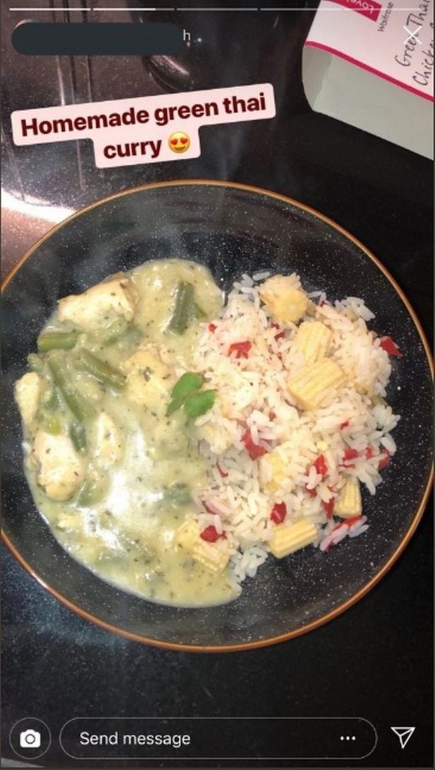 A lenti képet úgy posztolta a közösségi médiába egy nő, hogy azt írta képhez: házi készítésű zöld thai curry. Valóban, a tányéron ott gőzölög a bébikukoricás-paprikás-zöldbabos curry néhány csirkemelldarabkán, alatta ott a rizs, a halom tetején pedig két nagyon menő, kis zöld levélke.