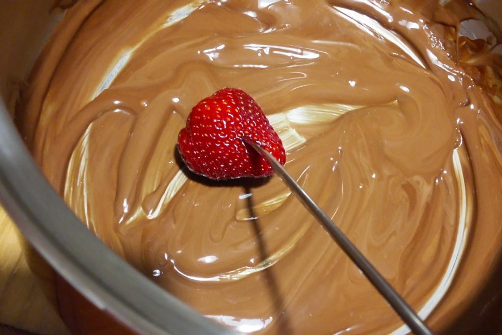 Mártogathatunk bele banándarabokat, aszalt gyümölcsöt (sárgabarackot, áfonyát, stb.), pillecukrot, és most már friss szamócát és áfonyát is lehet kapni – egyszer élünk! felkiáltással.