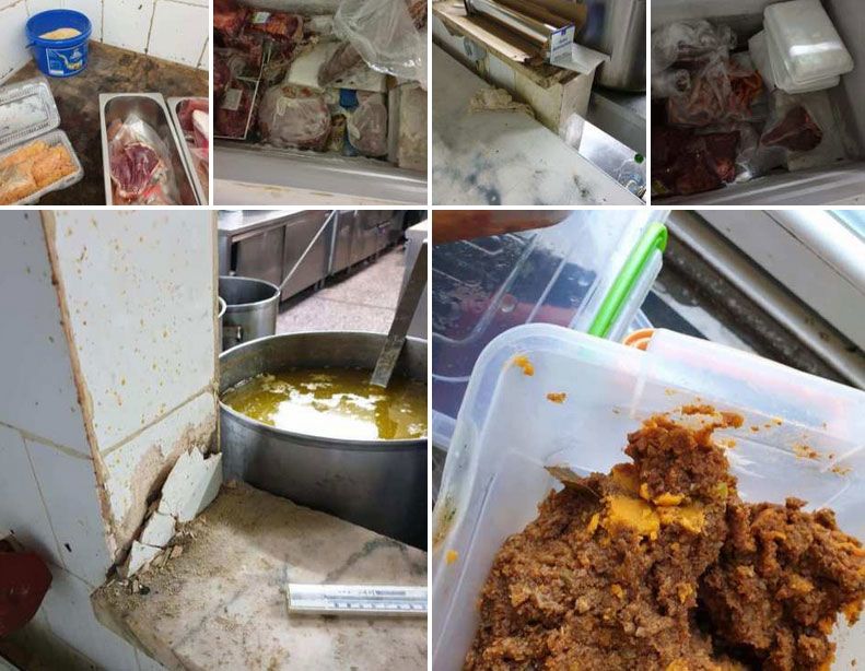 Mindezen túl találtak még lejárt szavatosságú tojásokat és egyéb termékeket, az egyik helyen összesen több mint száz kiló mennyiségben. Sőt az alapanyagok tárolása is sem volt túl higiéniabarát: például a nyers halat több mint három órán keresztül 25 fokos melegben tartották.