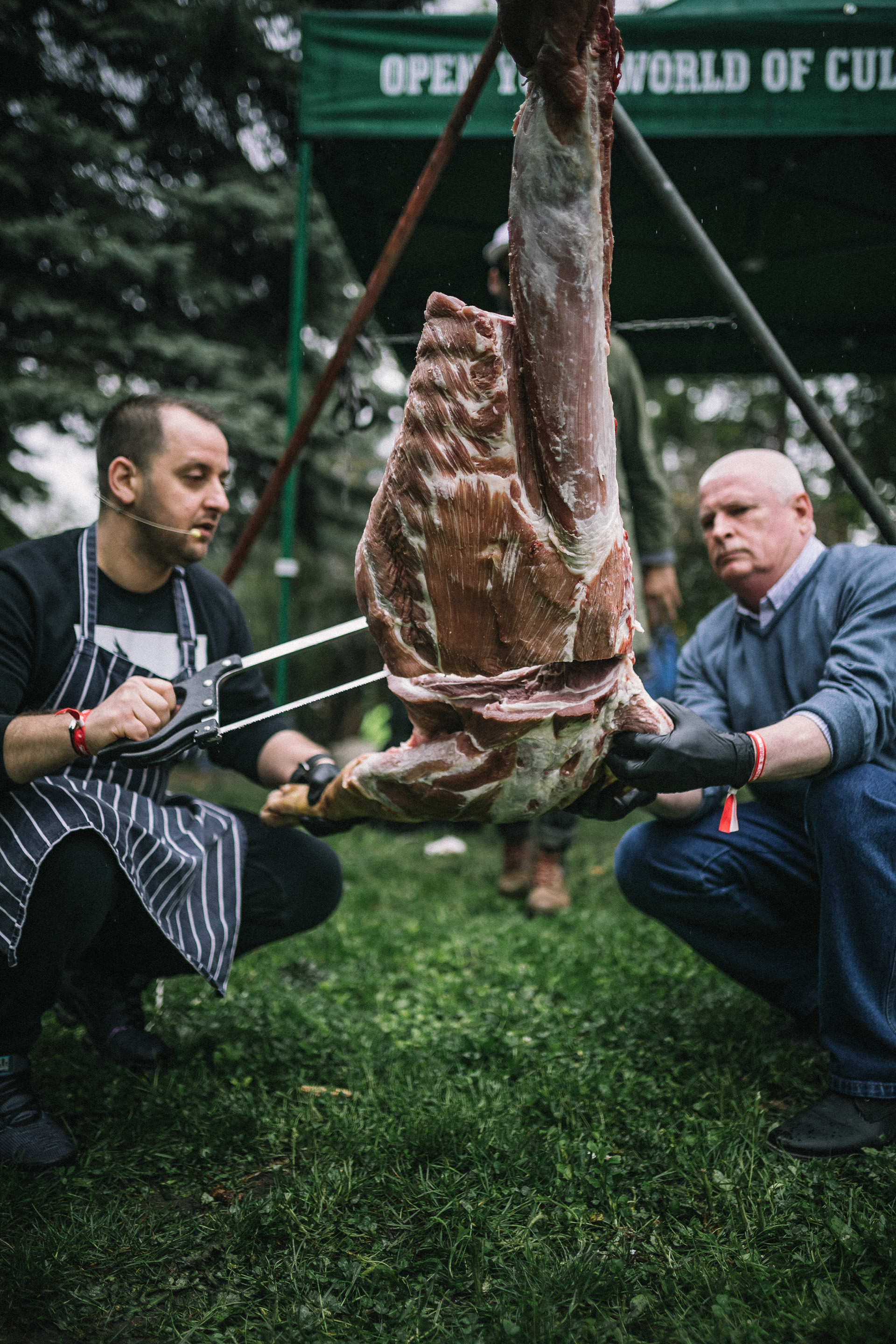 Amikor belépek a kapun, a kis etyeki birtokon éppen irgalmatlan hentelés folyik: Rácz Attila, a MészárSteak sztárhentese egy negyed marhát bont szét magabiztos szakértelemmel a színpadon. Röpködnek a húsdarabok és a laikusok számára vudu varázsigéknek tűnő szakszavak – St. Louis cut, Boston Butt, flat iron steak, brisket, ribeye –, Rácz minden egyes alkatrészről elmondja, mire jó, és hogyan kell vele bánni.