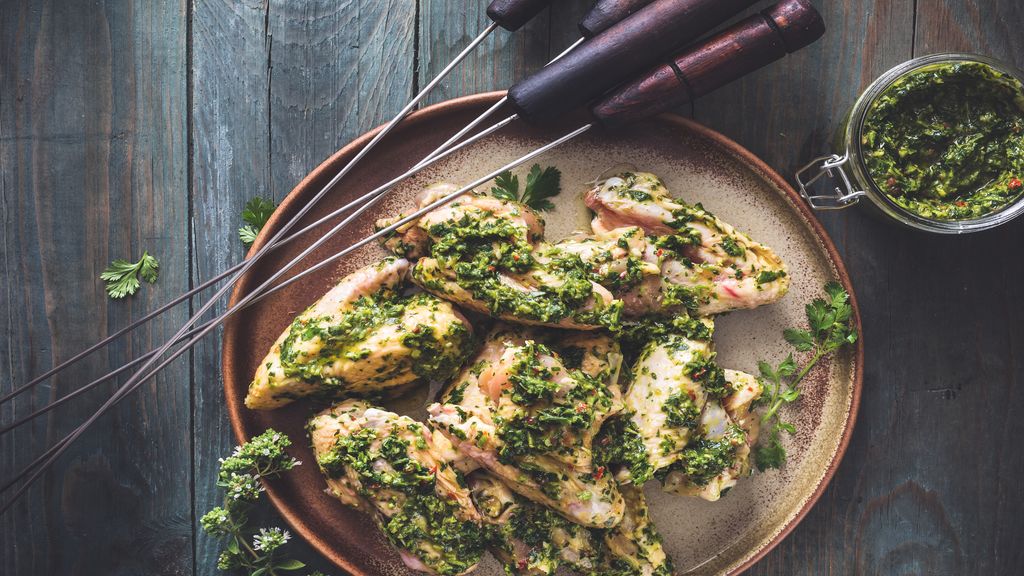 Keverd össze a zöldfűszereket a többi hozzávalóval, majd a pácba tedd bele a húst. Két órát hagyd állni benne, és már sütheted is.