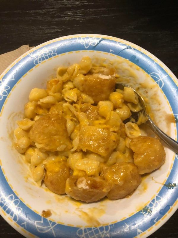 4. Ez a bánatos sajtos makaróniba oltott csirkefalatka kombó.