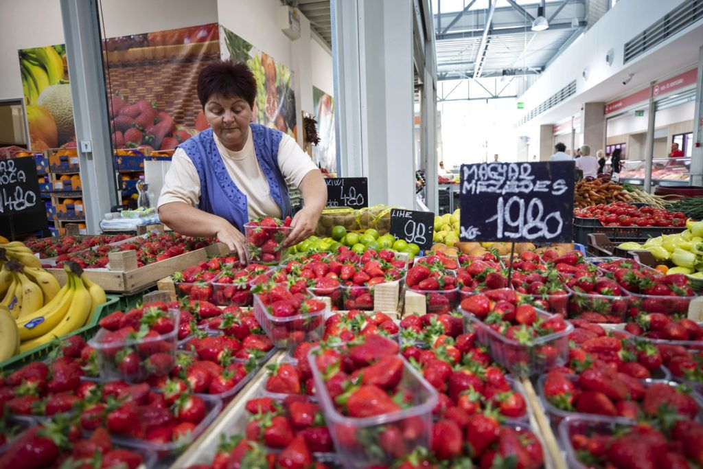 Epret pakol ki egy árus nyitás előtt a békásmegyeri piacon (Fotó: Mohai Balázs / MTI)
