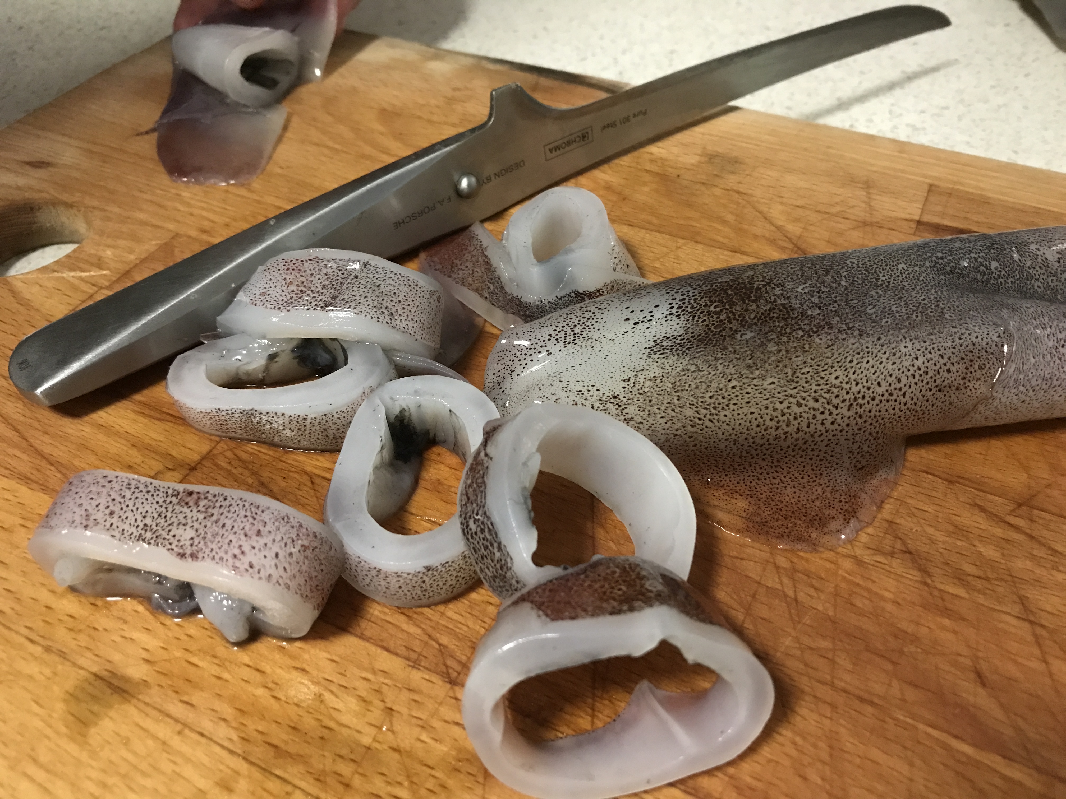 Ha sikerül horogra akasztanunk egyet, vigyázzunk, mert nemtetszését a tinta kilövellésével jelzi, ami bizony alaposan megfog mindent, éppen ezért remek ételfesték is. Ez után jön a kissé nyálkás móka, ugyanis meg kell pucolni a tintahalat. A fejet a csápokkal levágjuk, majd a belet és a szépiacsontot ki kell két ujjal húzni. Van, aki szereti a csápokat is megsütni, én a gyűrűkre esküszöm inkább.