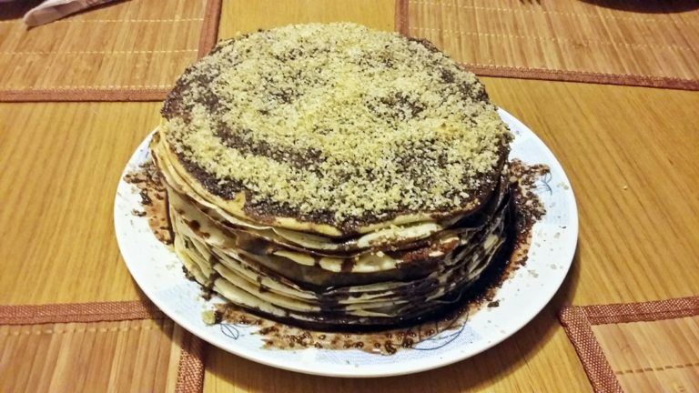 Mondhatnám, hogy a rakott (vagy csúsztatott) palacsintát csak poénból vettük be ebbe a válogatásba, de a valóság az, hogy két gyerek több mint egy évtizede tartó, életmódszerű etetése után én már nem engedem meg magamnak azt a luxust, hogy nem tekintem rendes ételnek a palacsintát. A dióval-csokival rakott palacsinta mindig beválik, viszonylag rövid idő alatt elkészül, amíg sülnek a palacsinták, el lehet készíteni a tölteléket, és ha van benne valami dióféle, akkor a tápértéke is már-már közelít a kívánatoshoz. Amúgy meg finom, úgyhogy nem tudom, ezek után milyen kifogásunk lehetne még ellene.