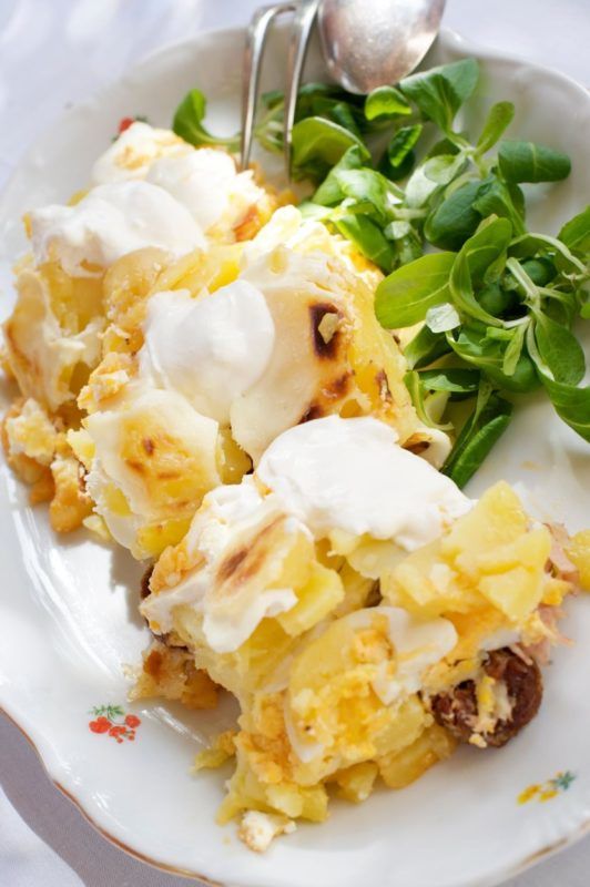 Az első, és legkézenfekvőbb rakott étel a rakott krumpli. Mindenki szereti, én még nem láttam embert, aki nem. Rakott krumplit lehet nyers, vagy héjában főtt krumpliból készíteni, lehet közé zsírt, vajat vagy tejfölt tenni, mindegy. A lényeg, hogy szottyos legyen, ami igazi művészet, mert a krumpli hajlamos minden szaftot magába zárni. Még akkor is, ha nem szétfővő, sárga krumpliból készítjük, hanem olyanból, ami megáll. Négy alapvető hozzávalóból áll: krumpliból, főtt tojásból, jóféle házi kolbászból és tejfölből, ezeket rétegezzük egymásra. Ezenkívül mindenki azt pakol hozzá, amit szeret, és amit megszokott, de nem érdemes túlzásokba esni, mert még a végén elveszíti rakottkrumpli-jellegét, vagyis egy másik étel lesz belőle, amit semmiképp sem szeretnénk.