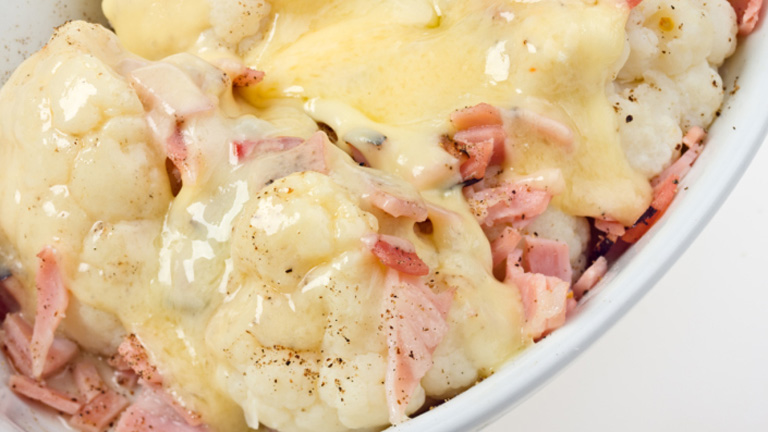 A sonkát ebben az esetben nem úgy kell elképzelni, mint valami sonkafelvágottat, hanem rendes füstölt sonkából dolgozunk. Nem tudom, más hogy van vele, én a húsvéti sonka maradékát le szoktam fagyasztani, és amikor kedvem támad hozzá, előveszem. Sonkás rakott karfiolt tehát praktikusan húsvét, vagy még inkább bableves után, másnap érdemes elkészíteni, mivel főtt sonkára van hozzá szükség hozzá. Klasszisokkal fantáziadúsabb fogás, mint a sonkás tészta, a karfiollal és a sajttal pedig különösen jól kiegészítik egymást az ízek.