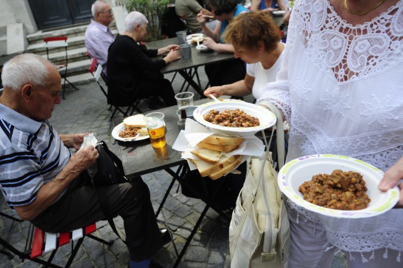 Kóstolás az Egységes Magyarországi Izraelita Hitközség Sóletfesztiválján Budapesten, a Kazinczy utcában (Fotó: MTI/Demecs Zsolt)