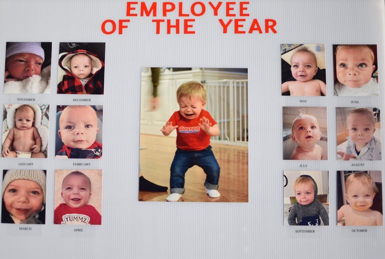 Az 1 éves Mason apukája teljesen oda van a Costcóért, ami egy nagyvállalat Amerikában, szupermarketük is van. A nagy rajongás miatt teljesen e köré épült a szülinapozás. Mindenki a vállalt színeibe – kékbe és pirosba – öltözött. A falat egy Costco – az év dolgozója kollázs díszítette Manson képeivel.