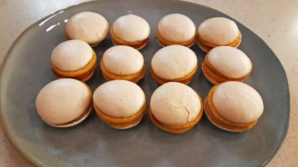 - A kisült korongokat kettesével összeragasztjuk barack- vagy málnalekvárral, vagy amit szeretünk.