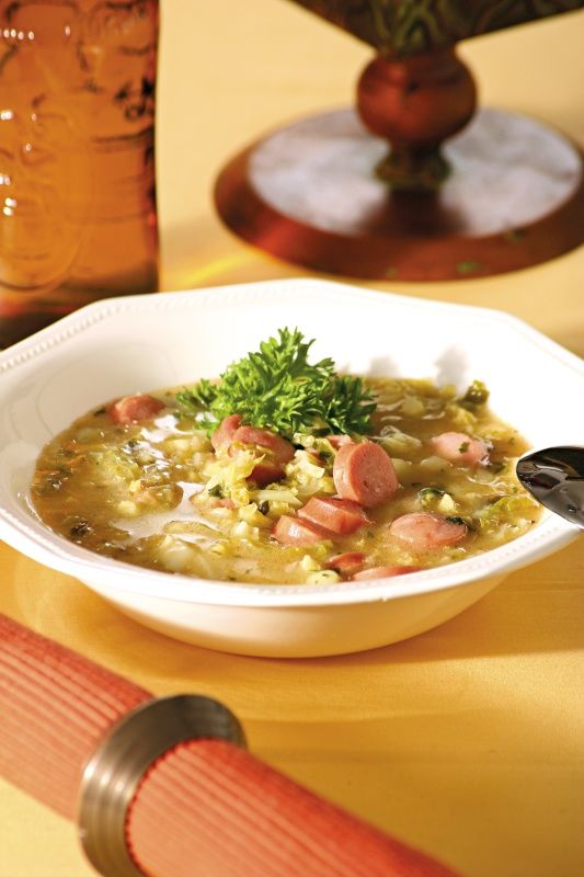 Az egyik legnépszerűbb levesünk a frankfurti leves. Eredetét tekintve Frankfurt városához semmi köze, alighanem a belekarikázott virsliről kaphatta a nevét, de ez minket egyáltalán nem tántorít el attól, hogy ilyet főzzünk, mivel finom, ráadásul tök egyszerű. Úgy vettem észre, hogy a gyerekek is imádják, ami szintén a virslinek köszönhető – nem is a kelkáposztának –, viszont a virsli farvizén nagy mennyiségű zöldséget is el fog fogyasztani az utód, már megérte.
