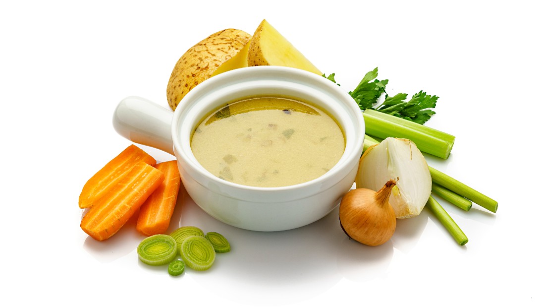 Póréhagymás zellerkrémleves baconchipsszel (Fotó: Getty Images)
