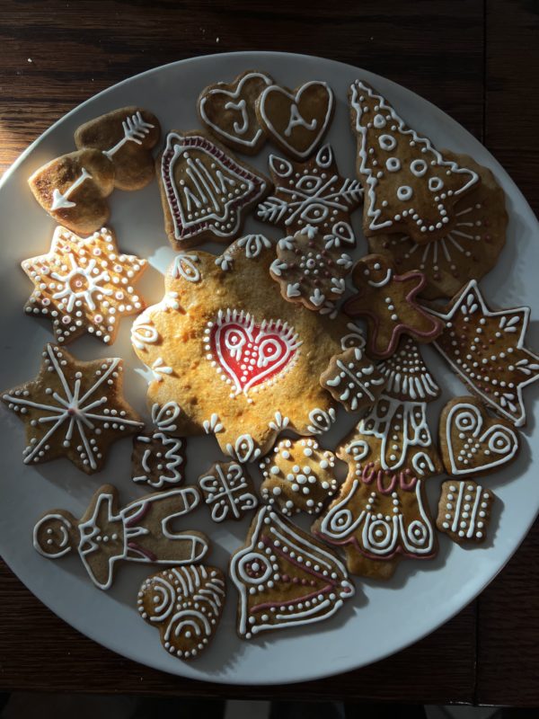 „A könnyű díszíthetőség egyik titka, ha laposra és keményre sütjük a mézeskalácsokat. Már egy nappal előre begyúrjuk a tésztát, és egy napot pihenni hagyjuk – meséli Anna. – Minimális sütőport használok. Ha egy recept négy mokkáskanál szódabikarbónát ír, én a felét teszem bele.”