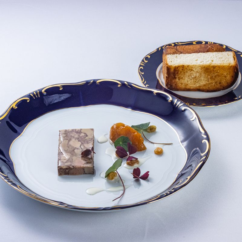 Pástétom vörösborban pácolt libamájból, sárgabarack lekvárral, Tokajiban áztatott aranymazsola szemekkel (Fotó: Pintér Árpád, Gundel Étterem)