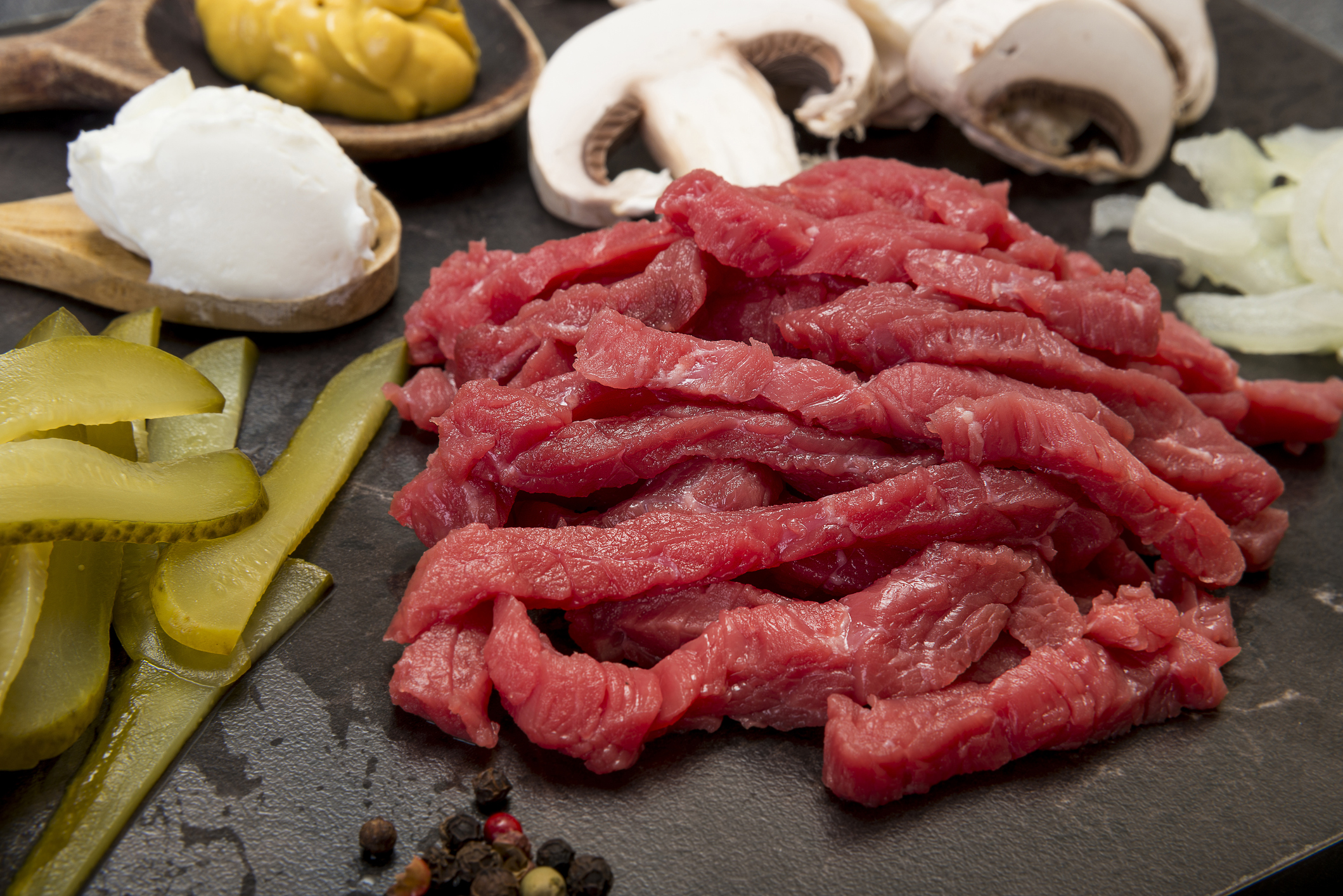 12. Melyik híres, bélszínből készülő étel összetevőit látjuk felsorakozni a képen?