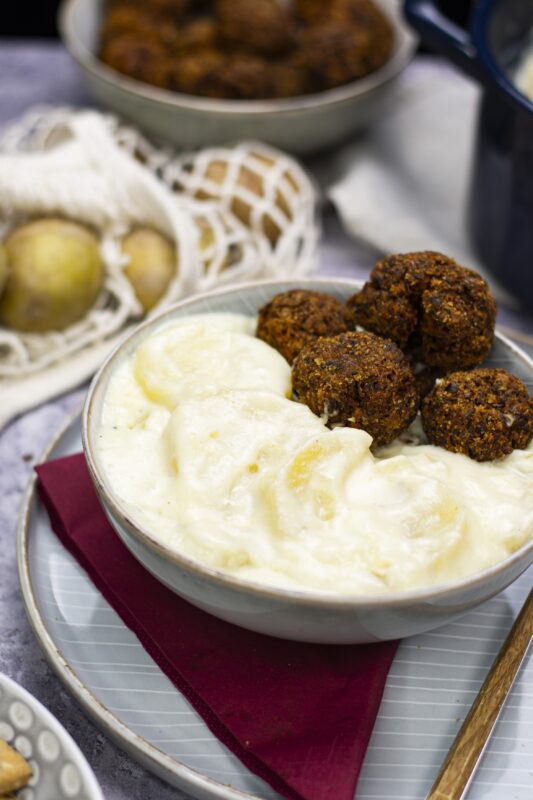 Nem a fűszerekkel, hanem a textúrákkal játszottunk. Krumplifőzelék fasírttal / Fotó: Gerzsenyi Flóra, Nosalty Ételfotó