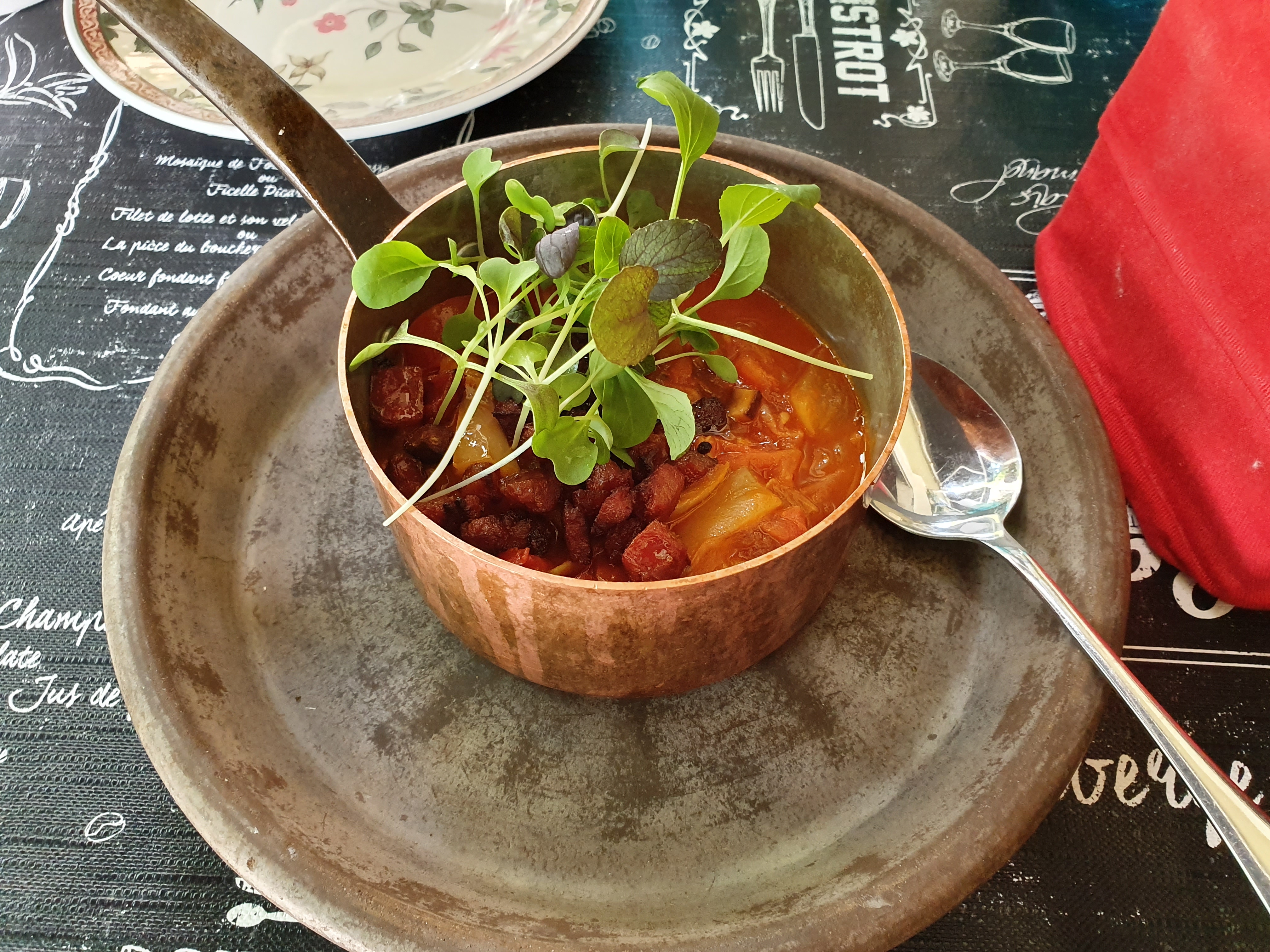 De valami ilyesmit szeretnék kifejezni, amikor azt mondom, hogy comfort food kerül a Petrus vendégeinek asztalára. (…) Van például nálunk paradicsomos káposzta, és ehhez egy saját készítésű marokkói kolbász dukál.”