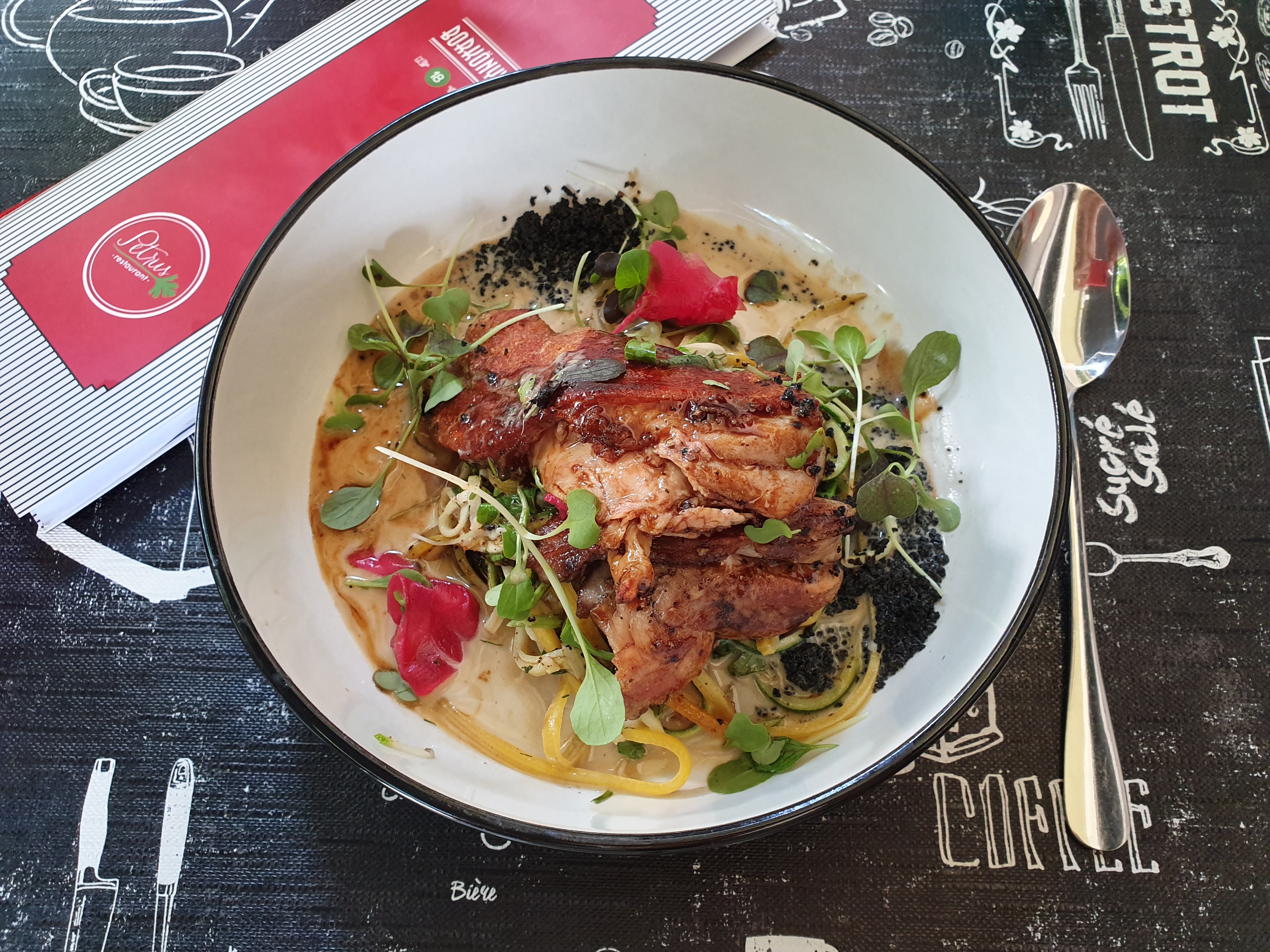 A frissen beszerzett alapanyagokból improvizált fogások mindig megjelentek a krétatáblás ajánlaton, de az igazi közönségkedvenc éttermek sajátossága, hogy a visszatérő vendégek a Petrus-klasszikusokat kérték újra és újra. Ez volt az egyik olyan hazai francia konyha, ahol mindig kérhettünk például csigából készült ételeket, de levehetetlen volt a menüről a paté de campagne, avagy a séf pástétoma, vagy az elképesztően mély színű és ízű francia hagymaleves, illetve a libamáj, ahogy ma gondoljuk (tényleg aznapi kedv és ötlet alapján).