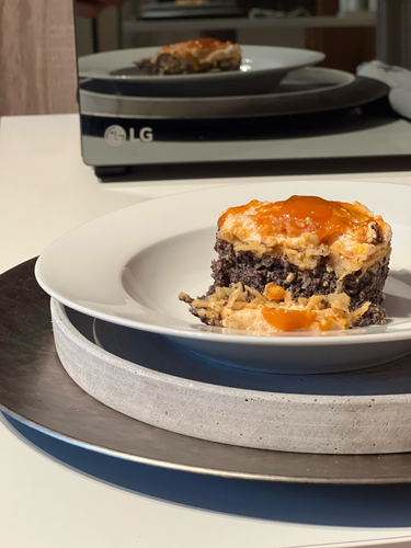 2. Először a mákos és almás keveréket tegyük a tálba, ezt 3 percig melegítsük a mikróban.